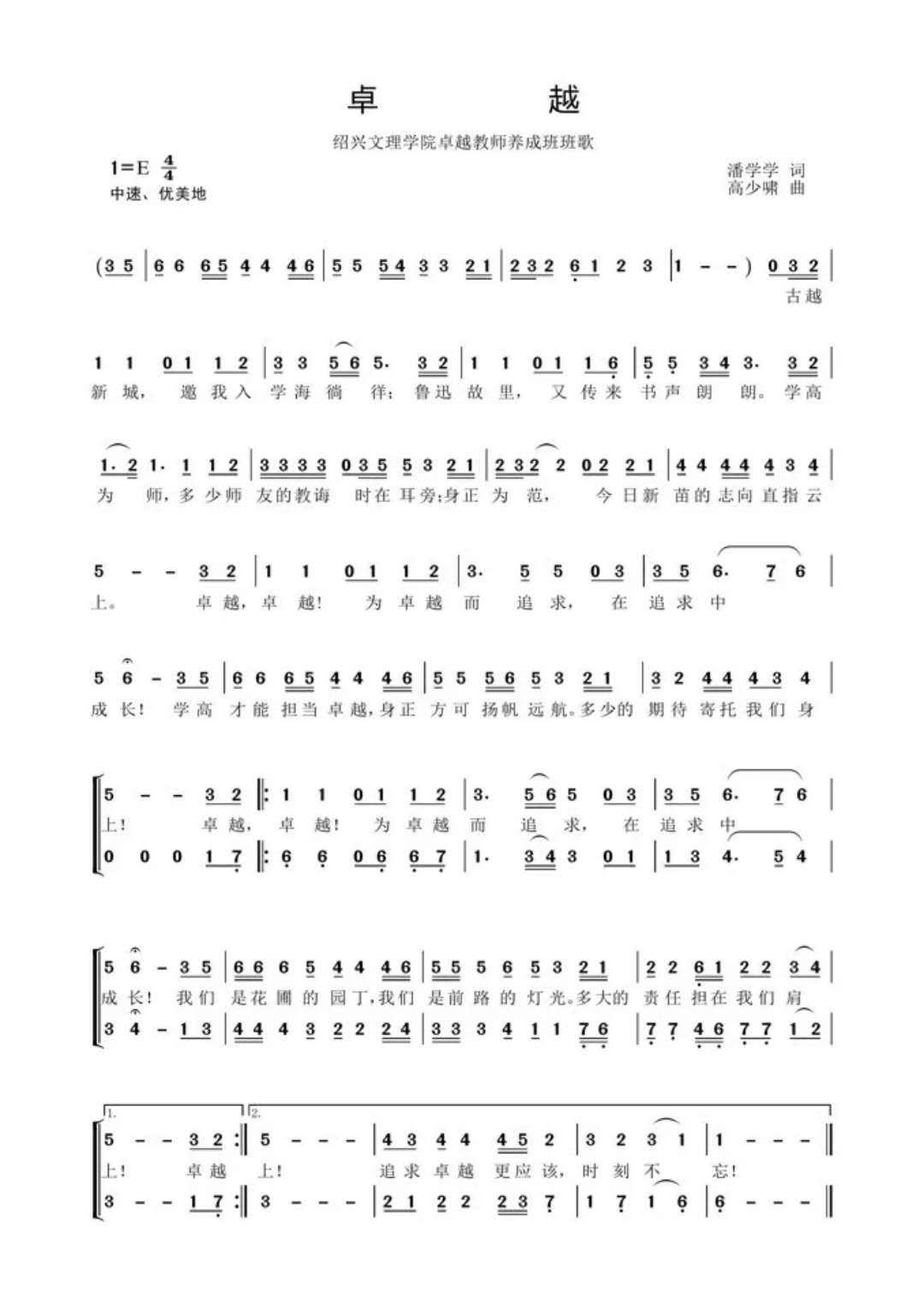 据词作者潘学学介绍,《走向卓越》以“古越新城”和“鲁迅故里”开头,体现了绍兴深厚的人文底蕴和欣欣向荣的面貌,并搭配祖楠班学子的书声琅琅和学海徜徉;“学高为师、身正为范”是师范专业的标杆,更是祖楠班人的信念;“追求卓越”是祖楠班的初衷,也是陈祖楠老校长的谆谆教诲;“为卓越而追求,在追求中成长”体现了所有祖楠班同学的心声。