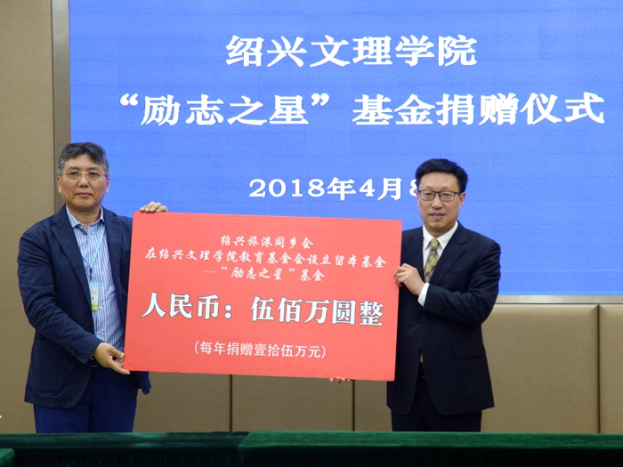 四月的校园,春意盎然。4月8日下午,由绍兴旅港同乡会出资设立的“励志之星”教育基金在我校铁城科教馆一楼会议室举行捐赠仪式。绍兴旅港同乡会会长严建国,绍兴旅港同乡会常务副会长高红、倪伟虎、任惠芬、邹学伟、卢正良、杨慧芳等乡贤,绍兴市委统战部常务副部长黄文刚出席捐赠仪式。校领导汪俊昌、王建力、唐和祥、沈赤以及相关部门负责人参加仪式。仪式由校党委副书记沈赤主持。