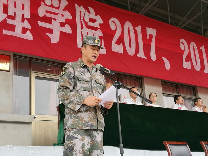 军训团教官代表张鹏在发言中表示,将服从命令,听从指挥,严格训练,科学施教,以身作则,尊师爱生,团结协作,确保高质量完成军训任务。军训团学员代表、数理信息学院孙晗程同学在发言中表示,将一切行动听指挥,认真掌握各项军事技能,学习国防知识,执行内务条例,磨练意志,锻炼作风,争做优秀学子,争当军训标兵。