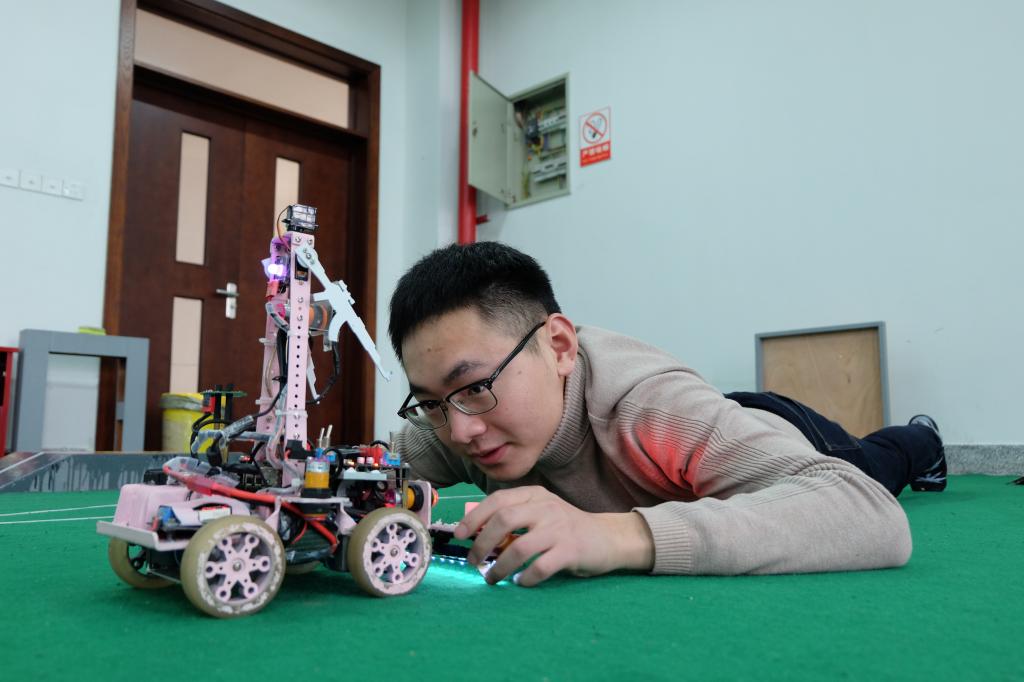 2016年一场关于机器人的讲座中,一台可以在各种障碍物中间自由穿梭的机器人,吸引了朱华中,让朱华中与机器人结下了不解之缘。