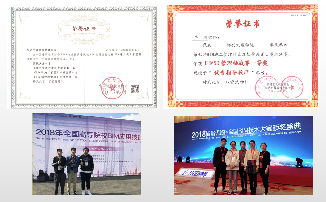 土木工程学院一直以来注重应用型人才的培养,在2018版人才培养方案中围绕BIM技术开设了多门相关课程。在学校支持下建成“BIM仿真虚拟实验中心”,并获批“中国建设教育协会BIM应用技能考试点”。学院教师参与编写BIM技术相关教材2部;积极指导学生开展BIM竞赛、学生社团等活动,学生已在BIM技术系列学科竞赛中获省部级以上奖项20余项。