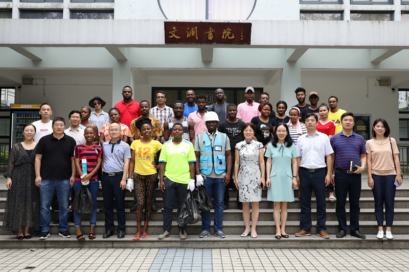 6月24日,我校国际教育学院负责人收到了来自生命科学学院国际研究生龙一诺(Luke Krua)的一封信,信中提到希望建立一个国际学生团体“International Students for Environmental  Consciousness”(简称“ISEC”),进一步推进绿色环保活动。7月8日上午,校园绿色环保清洁活动启动仪式举行,50多位来自不同专业的国际研究生共同参与。校党委副书记郝敬习出席启动仪式并讲话,党办校办、学工部、保卫处、生命科学学院、国际教育学院和相关学院负责人参加活动。