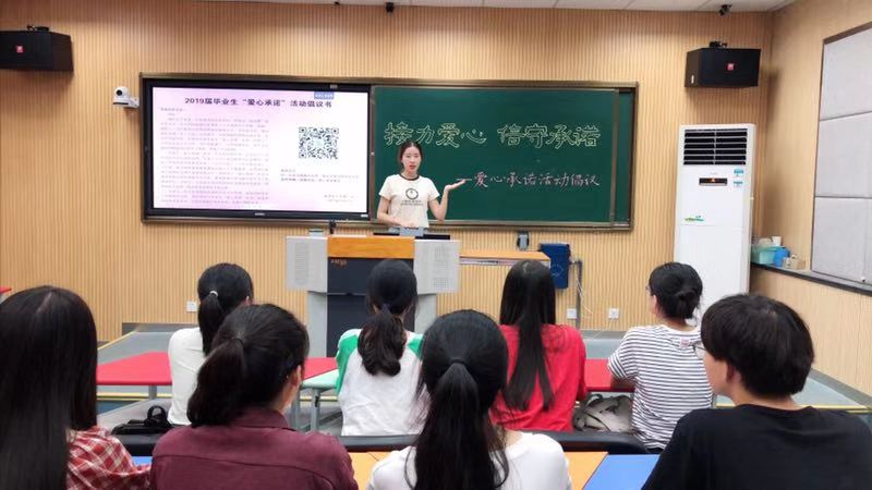 ——精心组织设计,宣传引导常态化。从1997年学生自发倡议到学校层面的全面组织发动,在校期间曾受资助的学生纷纷带头自觉承诺,给普通毕业生以引领和示范,学校将“爱心承诺”活动列入毕业生教育工作方案和每年毕业典礼的重要议程,形成了宣传引导的常态化。