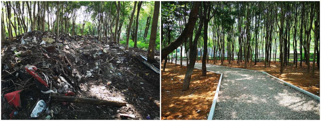 南山11-13幢教学楼西侧垃圾场整治   前后对比