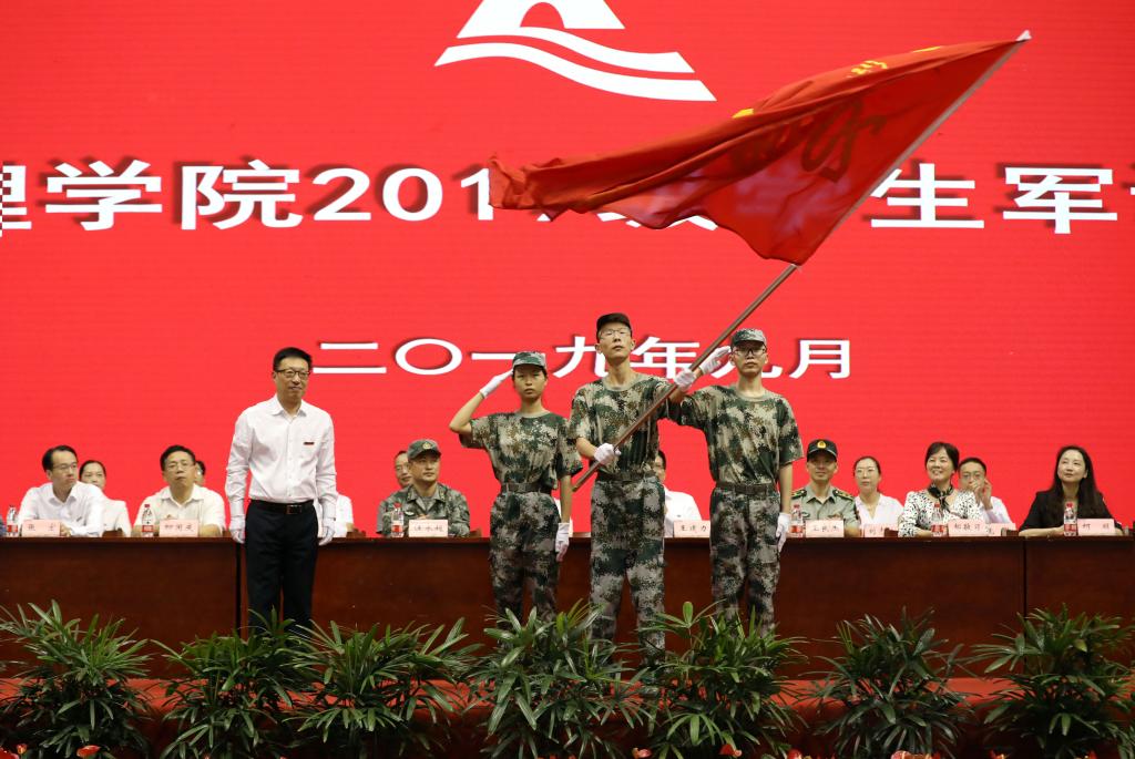 校党委书记汪俊昌,校长王建力,2019级学生军训团团长、浙江陆军预备役步兵师炮兵团政治处主任汪永超中校,预备役师学生军训督导组成员、工兵营营长王良杰中校,校领导沈赤、郝敬习、柳国庆、柯羽、张宏、黄坚,校党委委员宣绍龙、陈均土,学工部、人武部负责人,校军训领导小组全体成员以及全体承训教官出席开营式。汪俊昌向军训团授旗,王建力作军训动员报告。开营式由校党委委员、宣传部部长陈均土主持。