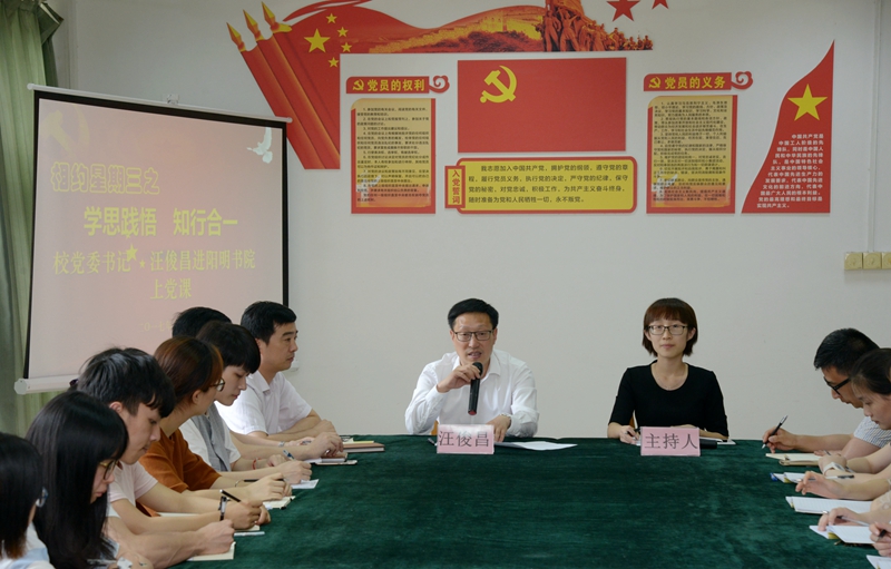 学校把始业教育“第一课”梳理成20门系列讲座,把学习贯彻习近平新时代中国特色社会主义思想主题教育、庆祝中华人民共和国成立70周年主题教育、专业教育、心理健康教育、安全教育等有机融合在一起,组织由50余位教授、博士组成的讲师团,实施始业教育课程化。校党委书记汪俊昌开学即给全校党员学生干部讲授党课,要求党员学生干部要做锤炼品质的表率、服务学生的表率、学业争先的表率、行为示范的表率。校长王建力给新生代表讲授“校长第一课”,引导学生学习党史国史校史,从70年的光辉历程中感受中国共产党领导人民取得的伟大成就,坚定信心跟党走,践行“修德求真、追求卓越”的大学精神,做一名修德、求真、实干的新时代青年。