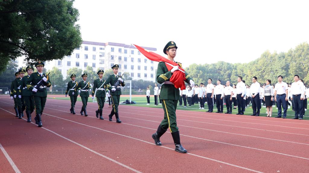 9月30日上午,校团委组织全校400余名团员青年在河东操场举行升旗仪式,庆祝中华人民共和国成立70周年。校长王建力,党委副书记郝敬习,党委委员、宣传部部长陈均土及党校办、学工部、保卫处、团委等相关职能部处负责人参加仪式。