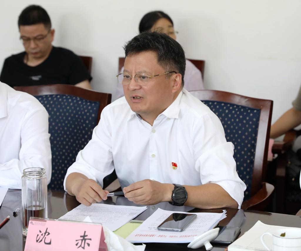 沈赤作《以党支部标准化信息工作平台为载体抓实党支部和党员主题教育》的工作汇报。中层干部代表封国强、陈文平、夏瑞明、叶访春,学生党支部书记和党员代表分别发言。