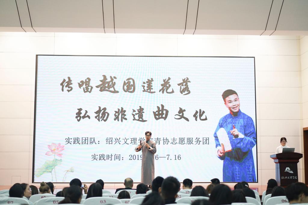 随后举行了暑期社会实践成果展示。今年暑假我校共组织了31支暑期社会实践团队,团队类型涉及理论普及、历史成就、文化艺术、科技支农、爱心医疗等,共有8支团队入选浙江省暑期社会实践重点团队。化学化工学院浙东大运河调研宣讲实践团、土木工程学院“益行”浙江省乡村地质灾害调研团、教师教育学院小候鸟帮扶团、医学院绍医青年爱心医疗服务团和校青协志愿服务团之曲艺莲花队,通过ppt讲解、视频回顾、莲花落演唱等多种呈现方式为大家带来精彩的社会实践成果展示。
