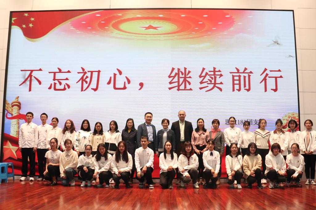 秀松人才学院全体学员共同观摩了马克思主义学院思政181班团支部以“青春心向党 建功新时代”为主题的主题团日活动。主题团日展示通过齐唱团歌、学年回顾、典型案例视频学习、小组讨论、重温入团誓词、班主任寄语等环节展开,各团支部成员结合时事热点和思政专业学习开展深入思考和讨论,支部成员从团学干部、思政教师、普通学生等不同角度积极踊跃发言,现场气氛十分热烈。