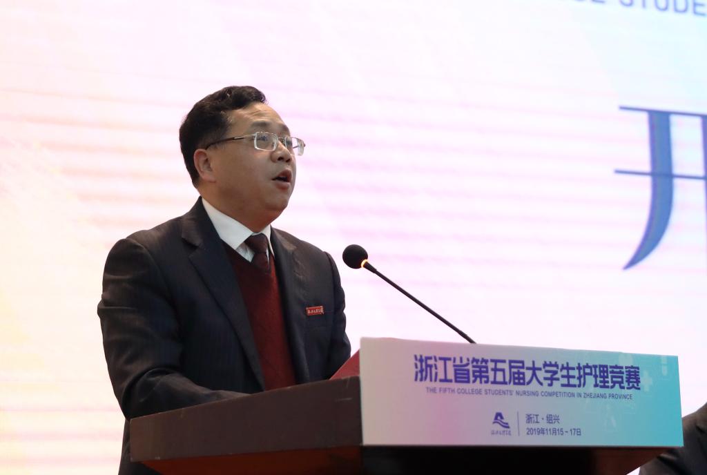 柳国庆致欢迎词。他指出,浙江省大学生护理竞赛是积极贯彻落实“健康中国”国家战略,落实立德树人根本任务的重要抓手,对推动护理教育教学改革,提升护理专业学生的德技素养具有重要意义。