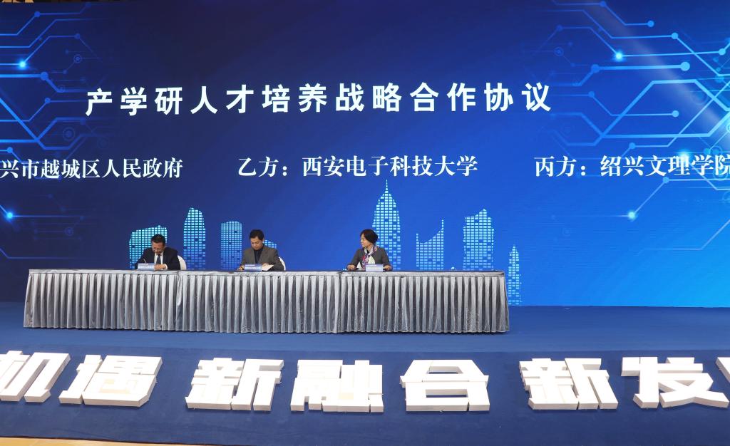 开幕式上,郝敬习与越城区常务副区长何浩挺、西安电子科技大学微电子学院副院长刘帘曦共同签署了产学研人才培养合作协议。三方坚持“优势互补、资源共享、互惠双赢、共同发展”原则,开展联合培养人才、共同科学研究、共建创业创新基地等方面合作,提升绍兴集成电路专业技术人才的培养质量,为绍兴集成电路企业培养更多高素质的应用型人才,助力绍兴集成电路产业快速发展,创造更大的经济效益和社会价值。