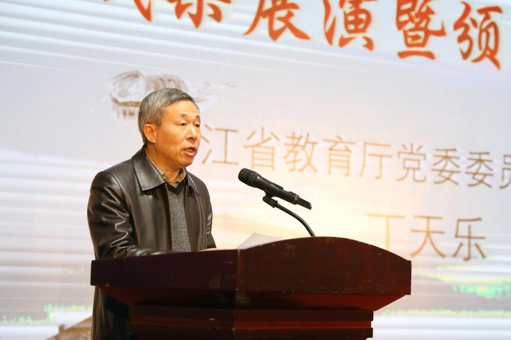 丁天乐强调,中华经典诗文是民族文化的精髓,举办大学生中华经典诵读竞赛目的是为了贯彻习近平总书记关于传统文化教育的系列讲话和中共中央办公厅、国务院办公厅《关于实施中华优秀传统文化传承发展工程的意见》精神,和教育部、国家语委发布的《中华经典诵读工程实施方案》精神,贯彻全国教育大会和全省高校思想政治工作会议精神,切实发挥语言文字在传承发展中华优秀传统文化、革命文化和社会主义先进文化中的重要作用,进一步落实全国和教育部、国家语委《关于进一步加强学校语言文字工作的意见》要求,在全省高校弘扬中华优秀传统文化,培育和践行社会主义核心价值观,引领大学生阅读中华经典诗文,提高大学生的语言文学素养和汉语口语表达能力。他指出,通过开展经典诵读活动,推动了高校的课程改革,提升了人才培养的质量,培养了大学生良好的阅读习惯和阅读兴趣,传承并弘扬了中华优秀文化,促进了学校人文化发展,提高了办学品位和办学特色。