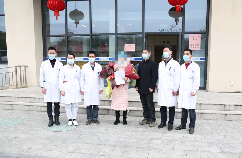 该例病人为女性,27岁,在武汉工作,于1月21日自驾回绍兴准备过春节。返绍后,一直在居家医学观察,25日出现阵发性干咳、腹泻,发热等症状,1月26日收治于附属医院隔离病房并确诊为新型冠状病毒感染肺炎。入院后,附属医院隔离病房医护团队精心治疗、细致护理、耐心疏导,并且,每天组织新冠肺炎诊治专家组专家会诊,及时对患者病情开展研判,科学调整治疗方案。经过干扰素雾化吸入、抗病毒药物治疗、及对症处理等措施后,患者体温正常4天,咳嗽等呼吸道症状消失,胸部CT复查肺部病变基本吸收,经绍兴市疾控中心3次核酸检测均为阴性。2月3日下午,绍兴市“新冠”肺炎诊治专家组会诊评估认为,患者病情痊愈,符合国家卫生健康委员会《新型冠状病毒感染的肺炎诊疗方案(试行第四版)》解除隔离出院的标准。