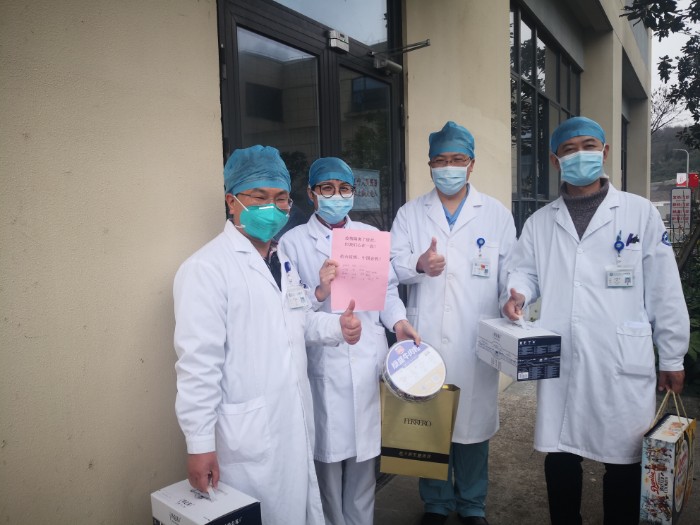 2月4日一早,我校附属医院放射科主管护师应华萍把省内爱心人士募集的250套防护服送到发热门诊倪晶贞护士长手上。这是医技第二党支部的党员和放射科的医务人员在得知绍兴市内防疫物资紧缺后,第一时间发动一众爱心人士,联系到远在内蒙古的防护服生产厂商,为战“疫”一线的战士们寻来这宝贵的“盔甲”。