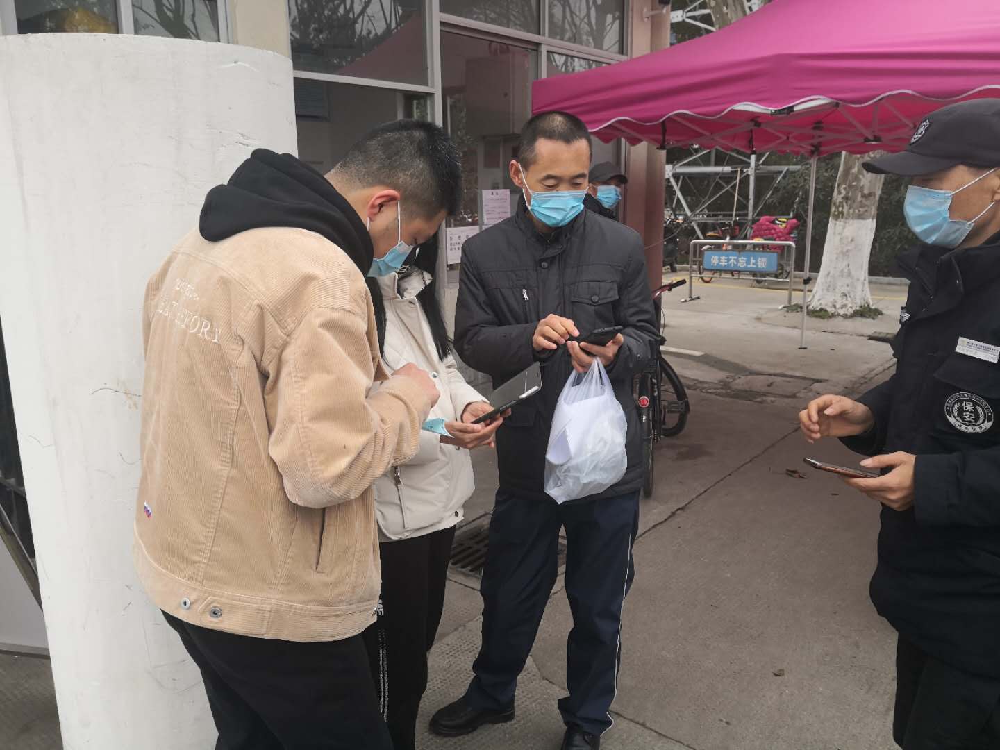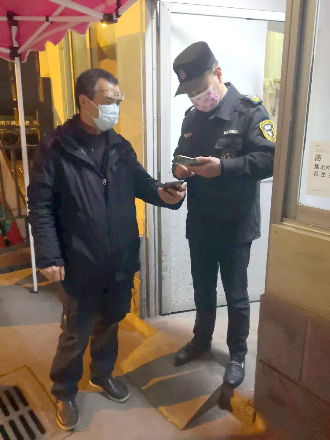 电子通行证运行之后,我校信息与教育技术中心工作人员到各校门口指导安保人员具体使用方法。