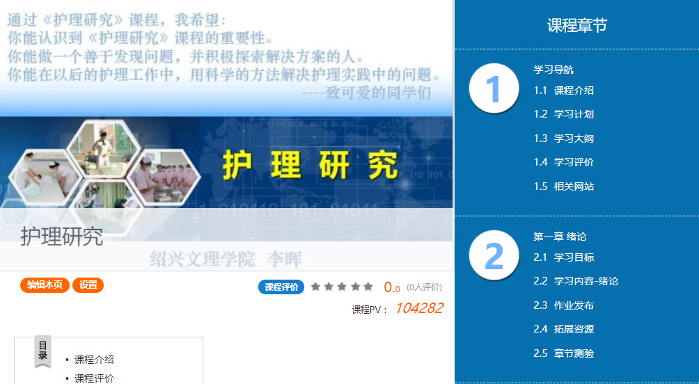 1.建设学习通课程平台。开课前做好课程整体设计、学习通课程平台整体框架搭建及前四次课程章节内容编辑上传。第一章为学习导航,包含课程介绍、学习内容计划安排、学习大纲、学习评价方法、相关学习网站推荐。后续章节分学习目标、学习内容、作业发布、拓展资源、章节测验及个别章节中会单设优秀作业展示。学习内容中包含:章节课件、相关视频、电子教材或教材相关内容文本、主题讨论等。
