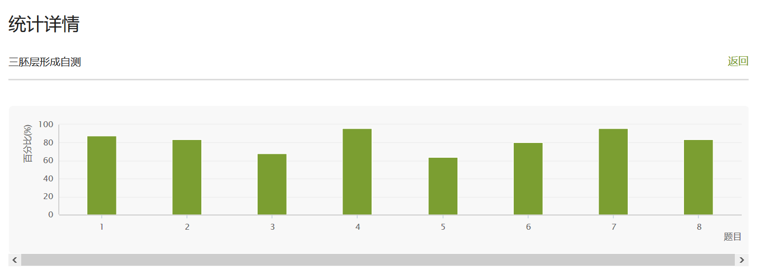 课堂开展同步的交互式学习:首先对课前的自测情况做简要点评(图10);其次对布置的课后主观题作业(人类成功受孕的条件)进行学生互评,该作业基于教材中的“插入框”“子宫内膜容受性”延伸,每人将评价3位学生的作业,经充分的讨论,与学生形成基本一致的意见。以上在30min内完成。