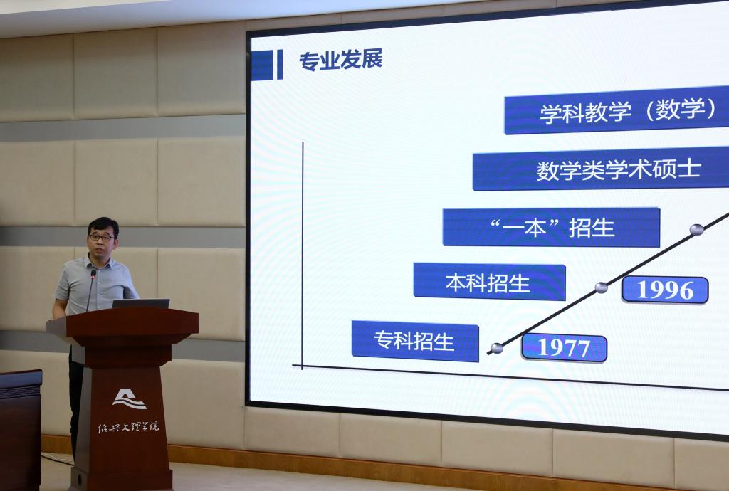 思想政治教育(师范)、数学与应用数学(师范)专业相关负责人就专业的基本情况、专业特色、建设举措、建设成效以及持续改进措施等内容汇报专业建设情况。