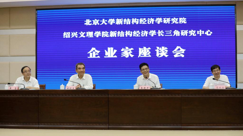 座谈会上,林毅夫就北京大学新结构经济学研究院以及新结构经济学提出的背景、主要思想作了介绍,并与企业家互动交流。林毅夫指出,我们不能照搬西方,要根据中国现象、中国问题与面临的障碍,形成社会科学自主理论创新体系,进而抓住时代机遇,推动时代发展。在新冠疫情和中美贸易摩擦背景下,在中国改革开放四十年的当下,更要坚持改革开放,以改革开放为中国经济持续高质量发展注入强劲动力。