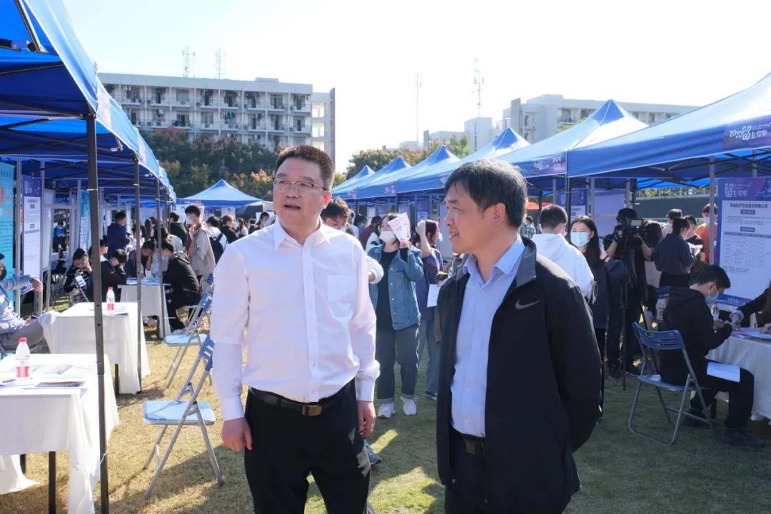10月31日下午,2021届毕业生“留在绍兴”专场招聘会在南山校区田径场成功举办。副校长陈均土,市人力资源和社会保障局副书记、副局长罗继红,市人才中心主任潘晓东、副主任吴永生出席活动。