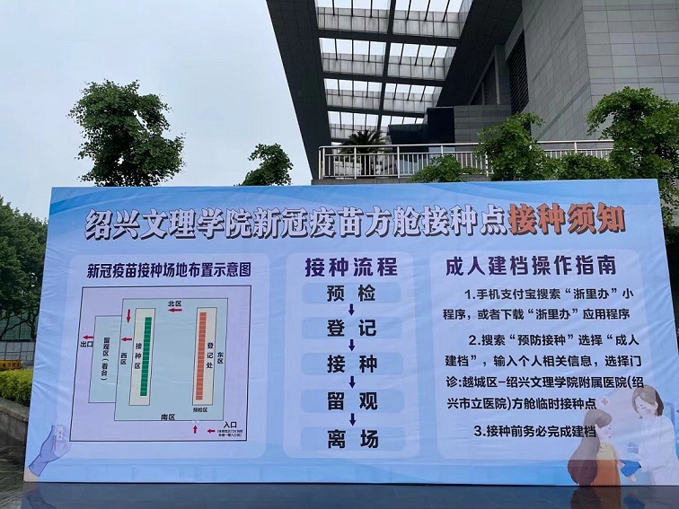 接种前,学校与绍兴市卫健委、市疾病预防控制中心积极对接合理规划校内方舱临时接种点。学校相关部门在前期做好了动员、信息采集、场所准备、物资保障、场地划分、卫生消毒等一系列准备。