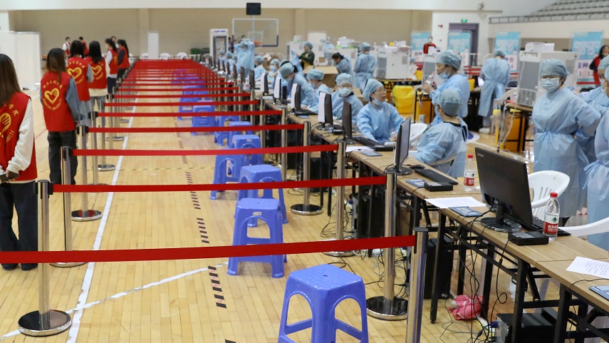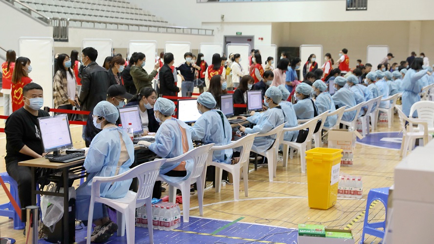 4月19日至21日,元培学院师生员工新冠疫苗第一针接种工作分时段、分批次在师生活动中心有序展开。