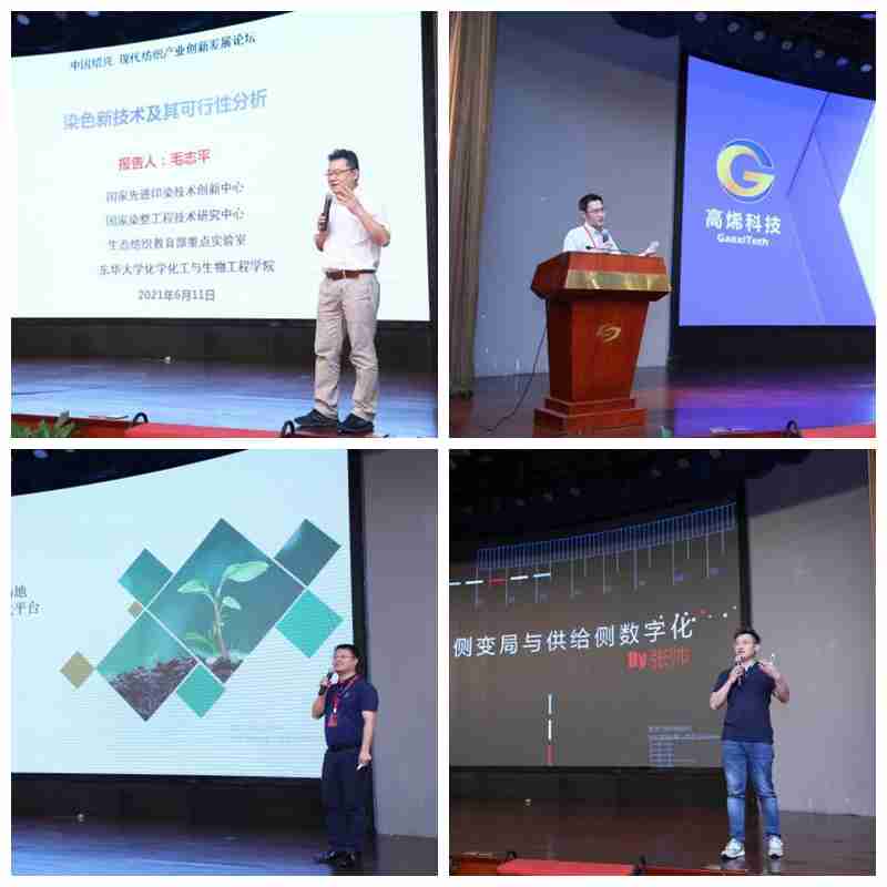 国家染整工程技术研究中心主任、东华大学教授毛志平,浙江大学求是特聘教授高超,浙江益壤环保科技有限公司董事长罗春晖和原阿里巴巴犀牛智造首席创新官张帅博士分别作了题为《染色新概念及其可行性》《石墨烯多功能康护纤维》《印染行业典型性污染场地土壤地下水信息化集成平台》《需求侧变局与供给侧数字》的专题报告。