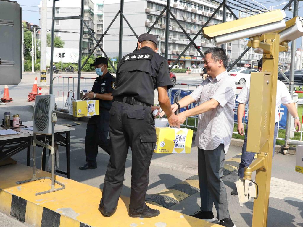 7月31日上午,校党委书记汪俊昌、党委副书记沈赤、副校长黄坚在党办、校办、校工会、基建处、学工部、后勤管理处、保卫处等部门负责人陪同下到学校各岗位,走访慰问了暑假期间仍坚守岗位、辛勤工作的教职工们,为他们送去了夏日的清凉和问候。