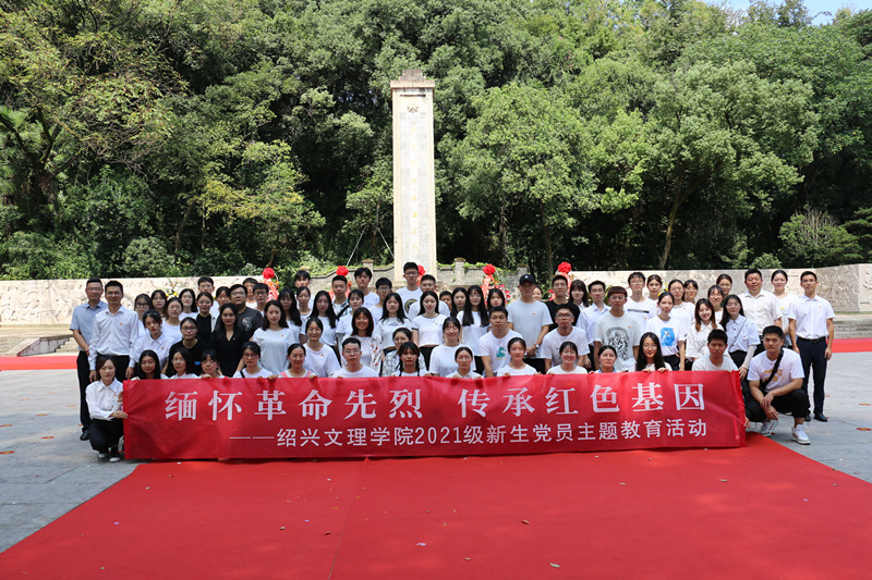2021级新生党员、研究生党员代表“缅怀革命先烈•传承红色基因”主题教育活动也在府山烈士陵园开展。绍兴市新四军研究会会长韩茂仁,学校党委组织部、化学化工学院党委相关负责人,2021级新生党员,化学化工学院研究生党支部全体党员参加活动。