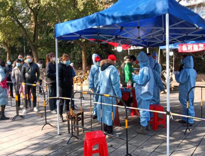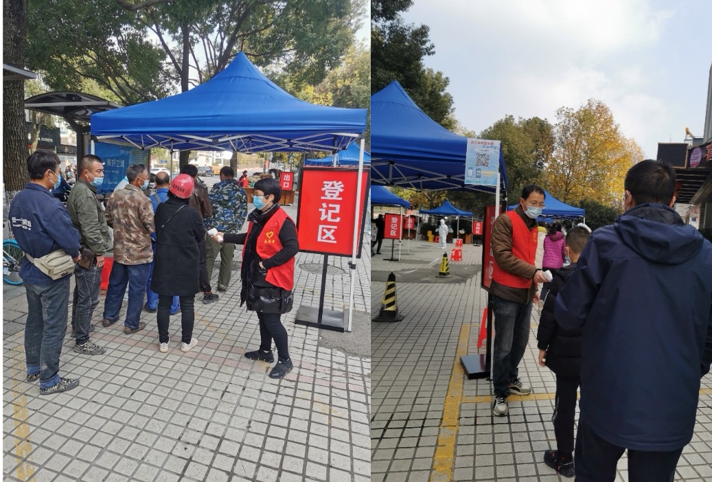 计算机系教工党支部自接到学校通知后连夜通过企业微信召开党员大会,第一时间报名组建应急“小分队”,在党支部副书记屠昂燕的带领下,赵建跃、冯晟、王祝春、王秀庆、陈良等党员积极主动参加鉴湖社区志愿者活动,协助有序开展第一轮核酸检测工作。