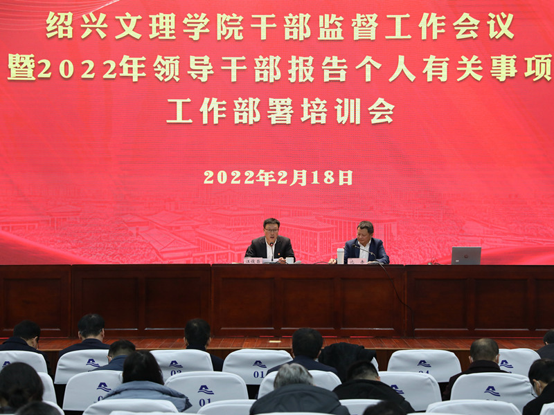 2月18日下午,学校干部监督工作会议暨2022年个人有关事项报告部署培训会在铁城科教馆报告厅召开。校党委书记汪俊昌讲话,校党委副书记沈赤主持会议。校党政领导班子成员、全体中层干部参加会议。