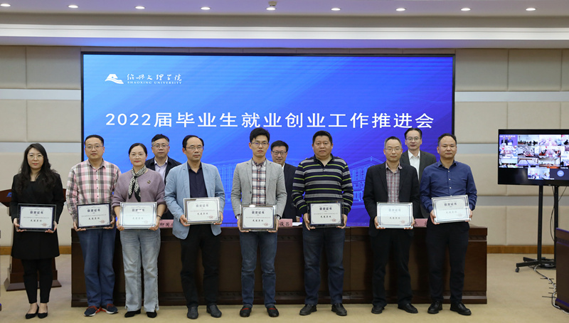 柳国庆宣读2021年度就业创业工作先进集体、先进个人表彰文件。校领导为2021年度就业创业工作先进集体颁奖。
