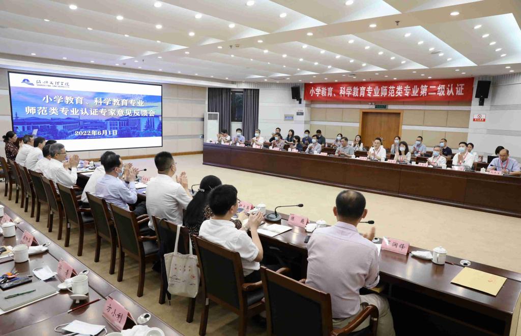 反馈会上,王建平、曹杰旺代表专家组对现场考查的基本情况进行反馈,充分肯定我校对认证工作的重视,肯定学校富有特色的师范教育办学模式,并对2个师范专业的特色优势及人才培养成效等予以认可。随后,各专家组成员反馈了2个师范专业在专业建设中仍待改进的问题,提出了具体的建议,为学校下一步整改指明方向。
