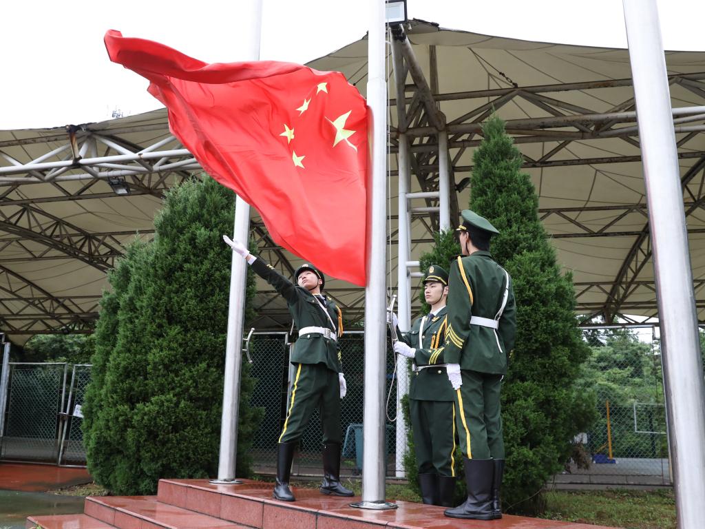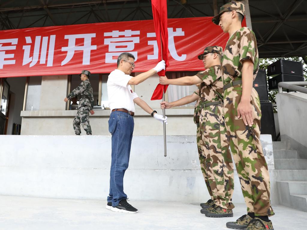 开营仪式在庄严的升旗仪式中拉开帷幕,参训学生身着统一迷彩服面向国旗庄严行礼。