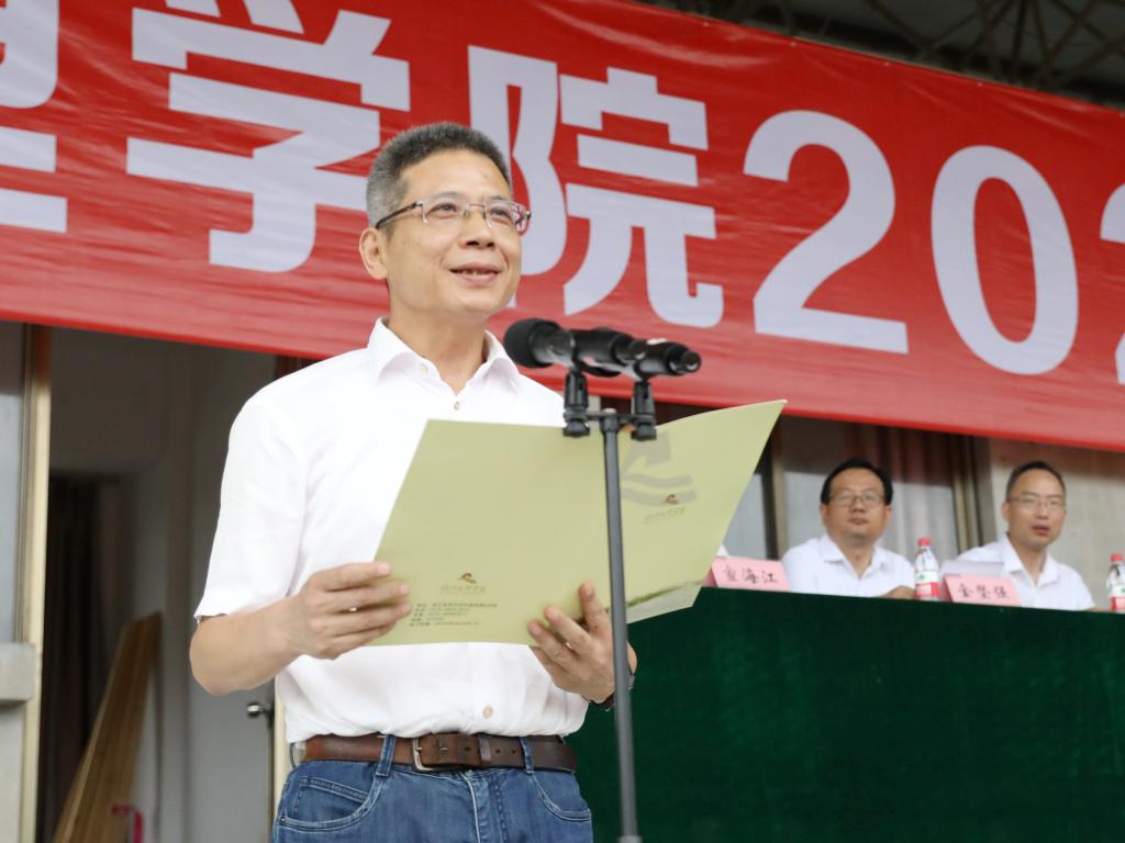 王建力作动员讲话。他代表学校党委、行政向参训全体学员、教官表示问候和感谢。他表示,军训既是学校人才培养方案中的必修课程,也是使大学生掌握基本军事技能和军事理论知识,提升身体素质,增强国防观念和国家安全意识,服务国家人才培养和国防后备力量建设的重要手段。他对参训学生提出三点要求:一是要继承和发扬革命传统,努力提高思想政治觉悟;二是要强化国防观念和责任意识,扎实掌握军事知识和技能;三是要严格遵守军训纪律,不断磨练意志品质。他希望大家以饱满的热情、旺盛的斗志投入训练,认真刻苦,顽强拼搏,修德求真,追求卓越,以优异的成绩展现新时代大学生良好的精神风貌。