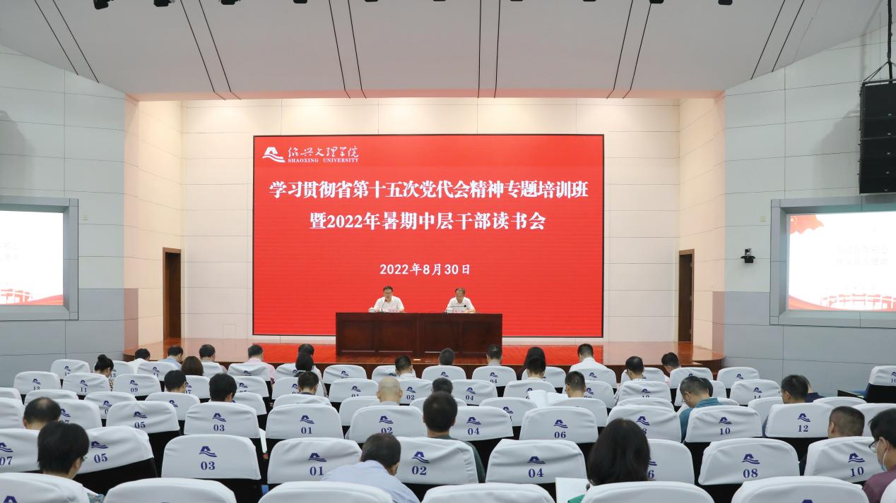 汪俊昌作培训班动员讲话,他指出,习近平总书记的重要讲话彰显了谋划复兴伟业、擘画强国蓝图的历史主动和使命担当,为推动新时代教育高质量发展指明了方向,省第十五次党代会是浙江迈入高水平全面建设社会主义现代化、高质量发展建设共同富裕示范区新征程召开的一次具有里程碑意义的重要会议,市第九次党代会是绍兴深入实施“十四五”规划、加快推进现代化建设、高质量推动共同富裕关键阶段召开的一次重要会议。学习贯彻习近平总书记重要讲话精神和省市党代会精神是当前和今后一段时期学校的重大政治任务。就开好本次培训班和读书会,他强调,一要提高政治站位,深刻领会省、市党代会精神的丰富内涵。切实把思想和行动统一到省、市党代会确定的各项目标任务上来,用实际行动忠实践行“八八战略”、坚决做到“两个维护”,当好“两个先行”“五个率先”的参与者、实践者和推动者。二要强化责任担当,切实推动省市党代会精神落地见效。作为地方应用型高校,要进一步增强使命感、责任感和紧迫感,抢抓机遇、主动作为,面向区域经济社会文化发展战略需求,全力提升应用型人才培养质量;要建设一支学术水平高、创新能力强、师德师风优的高水平师资队伍,成为新时代“名士之乡”的创新人才“蓄水池”;要主动对接浙江具有全球影响力的科创高地和创新策源地建设、绍兴构建高水平创新型城市重大需求,努力建成一批高层次科研平台、“高峰”学科和培育高水平成果,全力打造具有区域高质量发展匹配度的创新高地;要坚持发展与地方同步、特色与地方辉映、文化与地方交融、服务与地方共赢,实现“同频共振”“战略互嵌”,服务和引领地方高质量发展。三要抓学风促作风,确保培训班和读书会取得实效。要真正把学习贯彻省、市党代会精神与落实学校“十四五”发展规划和年度重点工作任务紧密结合起来,把学习成果转化为狠抓落实的执行力、攻坚克难的战斗力、创新发展的推动力,确保省市党代会精神在学校落地生根、开花结果。