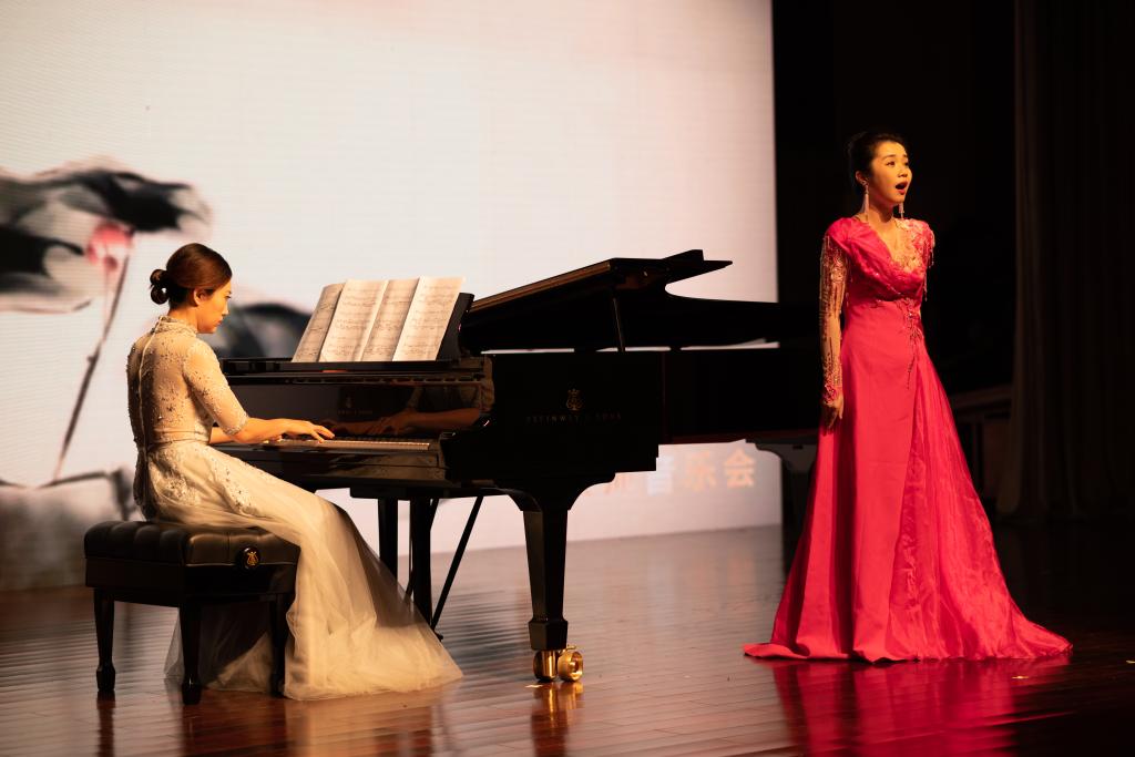 音乐会分为古韵新曲、多彩新声、时代新篇三个乐章,从不同侧面展现党的百年奋斗历程,弘扬浙江精神,传承地域文化。第一乐章的歌曲演唱《都说江南好》、古筝协奏《陆游与唐婉》、竹笛独奏《牧笛》、歌曲演唱《兰亭颂》等4首曲目生动形象地展现出越文化的深厚底蕴,弘扬“干在实处、走在前列、勇立潮头”的浙江精神。第二乐章的歌曲演唱《多情的土地》、钢琴独奏《中国风味音乐会练习曲两首——皮影戏、向中国致敬》、扬琴独奏《湘墨》、歌曲演唱《父亲的草原母亲的河》、小提琴独奏《花儿为什么这样红》等5首曲目凸显自强不息、坚韧不拔的中国精神,唱响献给党和祖国的赞歌。第三乐章萨克斯独奏《月宫》、歌曲演唱《向往》、双钢琴演奏《红旗颂》等新时代音乐作品慷慨激昂,用音符生动描绘出十年奋斗历程,抒发中华儿女永远跟党走、奋进新时代的豪情壮志。大气恢宏的歌曲《我的祖国》随后唱响,《歌唱祖国》的主旋律在校园上空久久回荡……