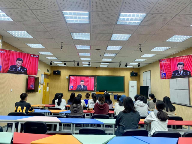 我校师生认真收看学习党的二十大开幕会 聆听习近平总书记报告
