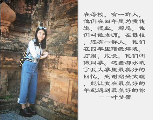 叶梦蕾,会计2014届毕业生,中国注册会计师(CPA)。在校期间为校明华奖学金、卓越奖学金获得者。曾任职于浙江天平会计师事务所,现任职中汇(浙江)税务师事务所税务部,从事税务鉴证、税务咨询及税务筹划工作。