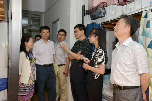 王建力实地考察了阳明书院和仲申书院的廊道文化、图书室(书屋)、病号房、学习辅导室、党员之家、诚信驿站、学生寝室等。他边走访边询问,肯定书院制改革所取得的成绩,着重了解书院在建设发展中存在的困难和问题。在学习辅导室,王建力对书院良好的硬件环境及文化氛围给予了肯定。王建力说:“要关注、关心学生的学习和生活,给学生创造有利的学习条件和生活空间,同时也要充分发挥学生的主体作用,切实加强学生的自我管理和自我服务能力。”