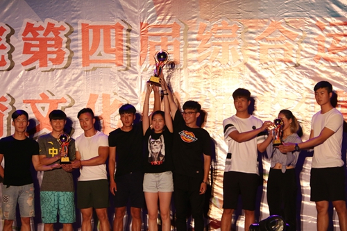 晚会中间进行了本届综合运动会中乒乓球团体赛、羽毛球团体赛、排球赛、足球赛、篮球赛、趣味运动会和田径团体赛颁奖。