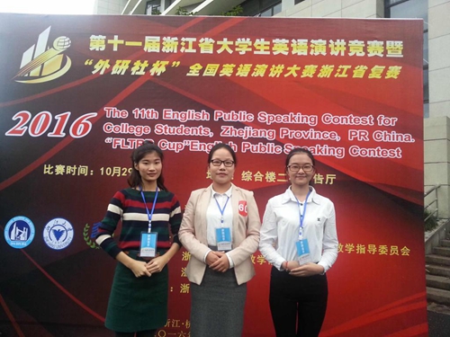 英语131杨文斌、132何丹丹获得浙江省高等学校第十届师范生教学技能竞赛一等奖,英语131朱丽慧获得二等奖