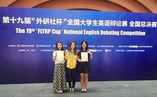 英语133陈怡娜获得第十九届“外研社杯”全国大学生英语辩论赛全国总决赛三等奖