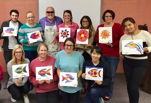 陈凤雏老师参加美国南阿拉巴马大学教育学院Dr.Vitulli的艺术课,课后和学生及当地的盲人画家合影