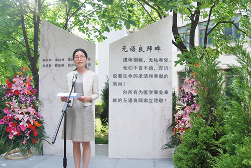 郑杰简要介绍了我市近年来遗体(器官、角膜)捐献情况。她指出,“无语良师”纪念碑的落成恰逢第70个“5•8”世界红十字日,意义非凡。