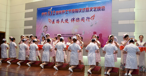 5月10日,我校庆祝5•12国际护士节授帽仪式暨“医路天使 与你同行”主题文艺晚会在铁城科教馆报告厅隆重举行。校党委委员、医学院党委书记柳国庆,校学工部、校团委、医学院相关负责人,以及2014级全体护生出席授帽仪式。