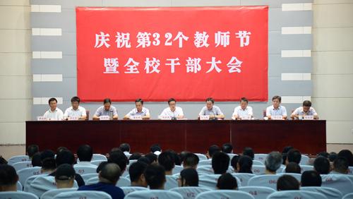 9月6日下午,学校在铁城科教馆一楼报告厅召开庆祝第32个教师节暨新学期干部大会。校党委书记汪俊昌主持会议并发表讲话,校长叶飞帆部署学校下半年和开学前后主要工作。