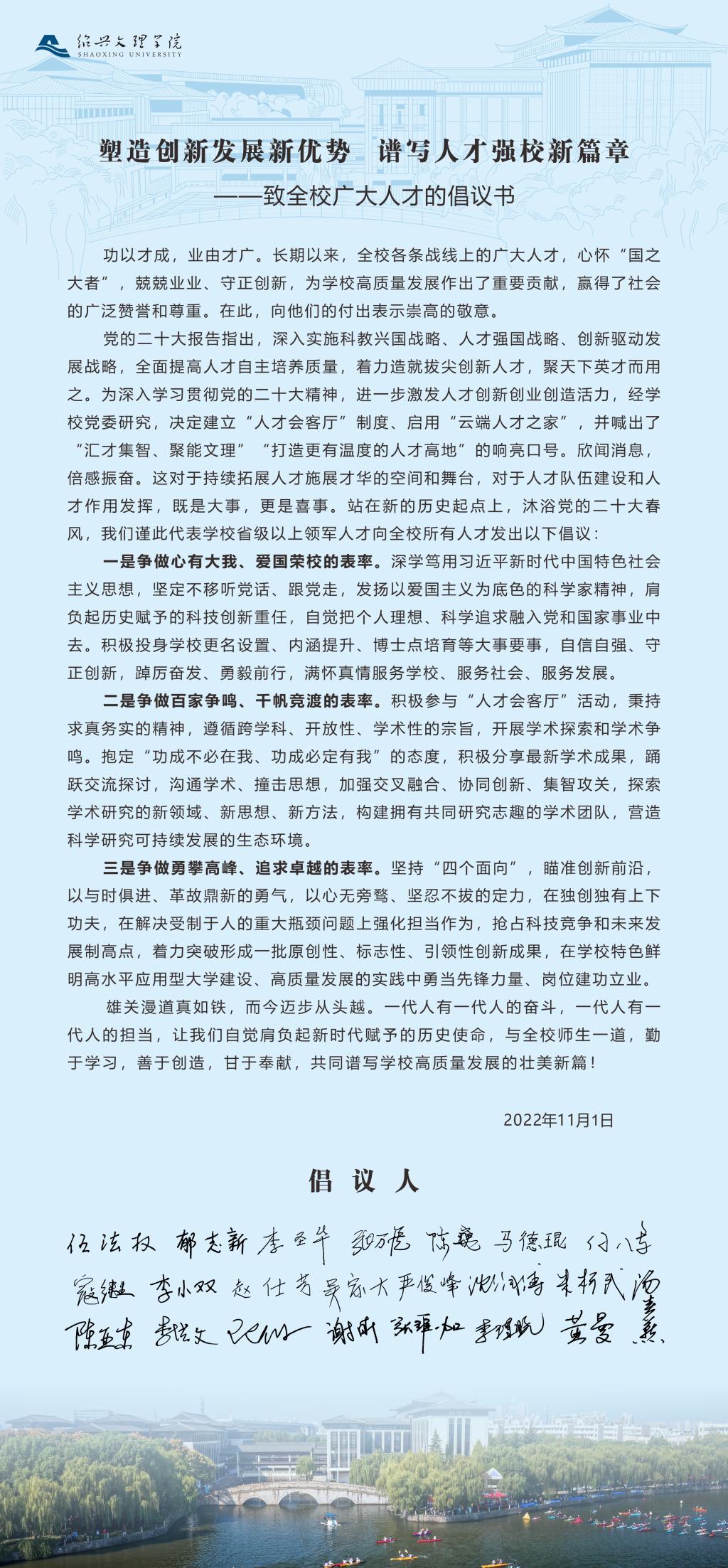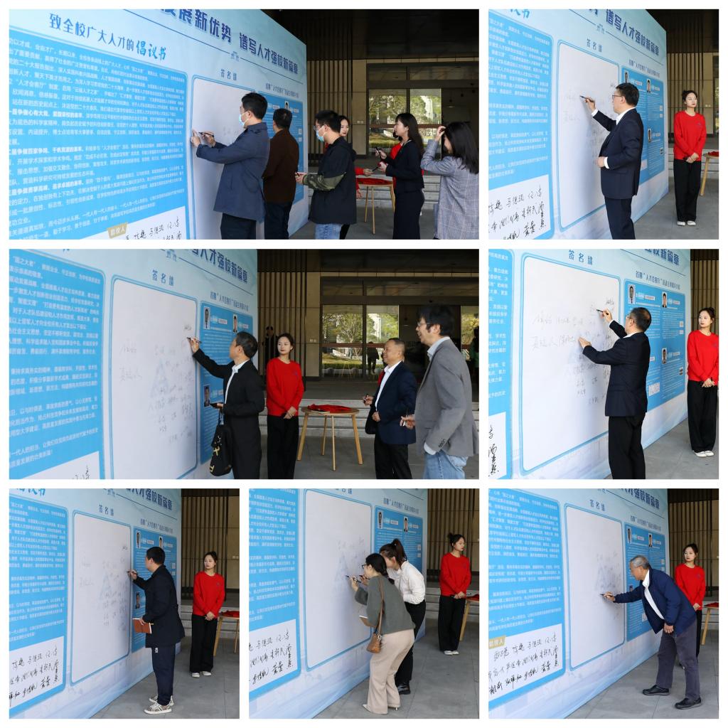 宣绍龙介绍“云端人才之家”“人才会客厅”建设情况。学校省级以上领军人才向全校所有人才发出了《塑造创新发展新优势  谱写人才强校新篇章》的倡议书。