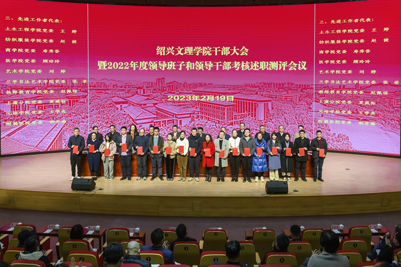 2月19日下午,新学期全校干部大会暨2022年度领导班子和领导干部考核述职测评会议、全校警示教育大会在风则江大讲堂报告厅召开。校党委书记汪俊昌讲话,校长赵阳作2023年工作部署,校党委副书记沈赤主持会议,校党委副书记张宏宣读表彰文件。校党政领导班子成员、全校中层领导人员、近三年退下来的校级领导、各民主党派负责人、教代会执委会成员、高级职称教师代表、先进集体和先进个人代表等参加会议。